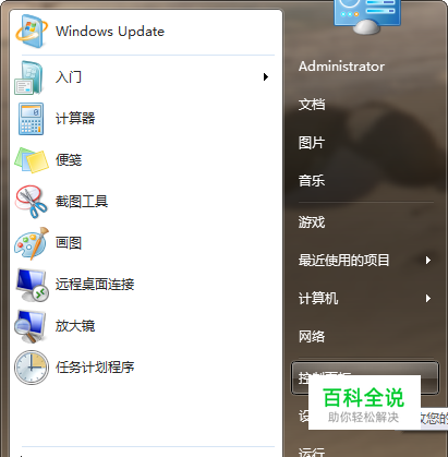 我们需要在系统更新卸载中完成操作,首先在开始面板中找到“控制面板”选项。