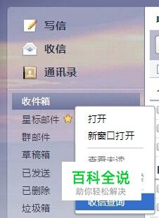 收信查询:有一些邮件发过来以后,被QQ邮件系统直接屏蔽掉,这些邮件甚至不会被放入垃圾收件箱,如果应当收到邮件,但确实没有收到,可以查看收件记录。具体操作为在收件箱上单击右键,然后选择收件查询。