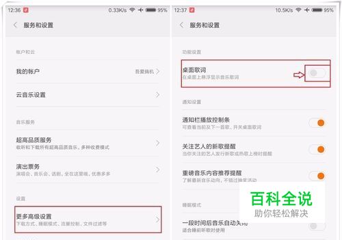 打开更多高级设置--桌面歌词打开(在音乐播放器界面长按屏幕下方左边的三横的按钮一样可以快速进入音乐播放器的设置)