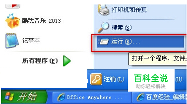 1、点开开始菜单,选择“运行”。