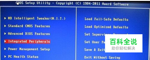 1、首先是BIOS里设置,我们一般开机按DEL或F2进入BIOS里,选择Integrated Peripherals。