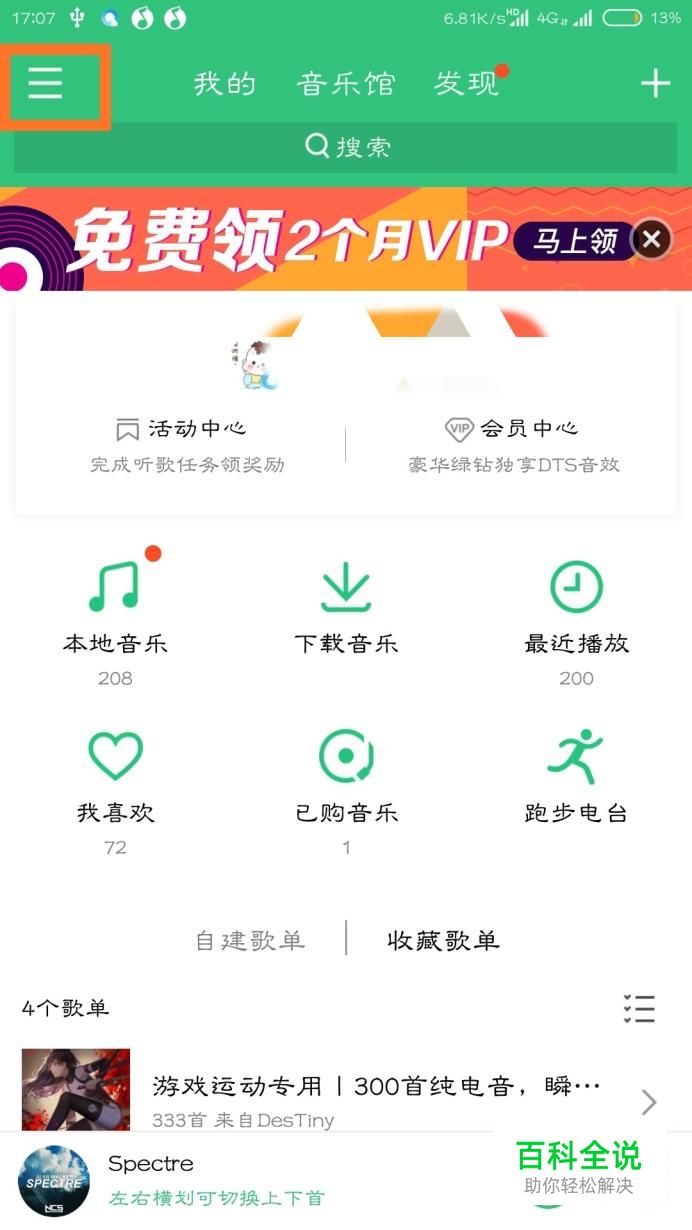 首先打开QQ音乐,点击左上角的三条杠线。
