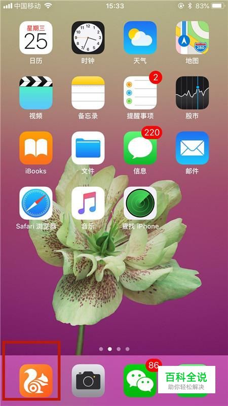 首先在我们的手机桌面上找到uc浏览器并点击它,如下图所示。