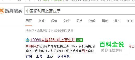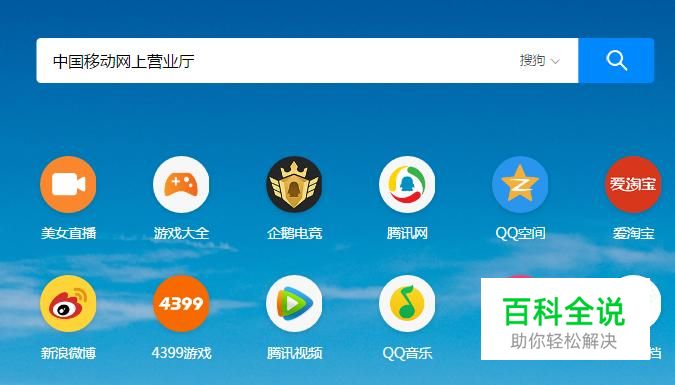 首先在搜狗浏览器中输入中国移动网上营业厅并点击回车键,如下图所示。