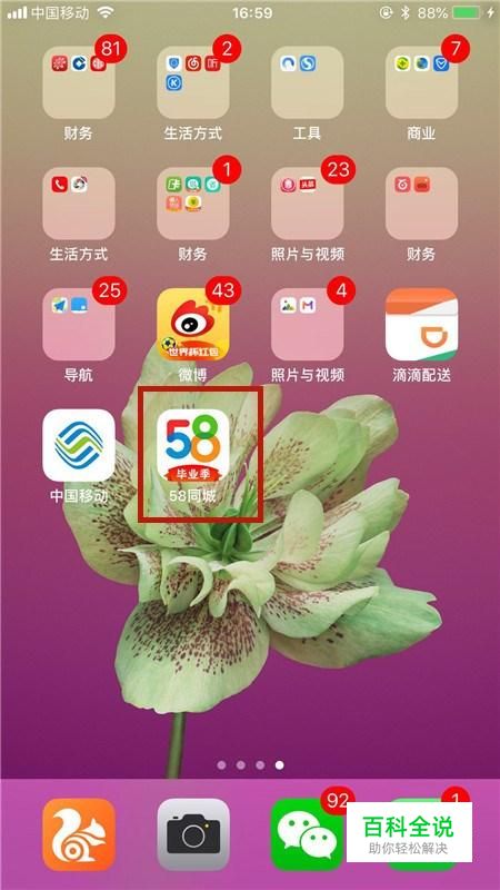 首先在我们的手机桌面上找到58同城并点击它,如下图所示。