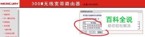 第一步,进入WiFi设置页面(这里以水星为列),先随便打开一个浏览器,输入192.168.1.1进入WiFi设置页面,一般需要输入路由器管理员密码或者管理地址,大部分用户名和密码都为admin。如图,找到无线设置点开主机状态看到里面的MAC地址没!!上面显示有3个地址(有几台设备连接就会出现几个mac地址)上面因为有2台设备连接,所以显示为2个mac地址。