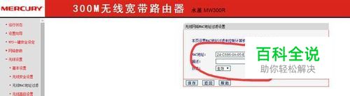 第二步:记录下上面的mac地址!!!(最好是把家里的设备都连接到路由器,并记下每台设备的mac地址),然后点击无线mac地址过滤,点击添加新条目,如图,输入刚才的mac地址,然后点击保存即可,描述和状态可以不管。