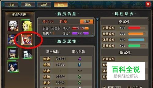船员巴基: 有好将,却不会如何将他变强,那是多么的悲哀,还在这自喜得乐。为了不让大家重滔我朋友的路,我把我的强化巴基技巧告诉大家。 小小海贼王巴基品质属于S,职业是阻击手,主动技能:旋转飞镖:属于特殊技,而且攻击范围比较广泛,攻击敌人的整行,也属于是半群攻的伙伴之一了。而此技能对敌人会造成巨大的物理伤害并且会把敌人击晕1个回合。那就相当于多了1个回合攻击敌人。