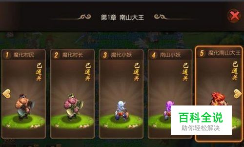第四章:玉兔精 开启条件:通关第三章 开启等级:50级 关卡情况如下: 第四章注意事项:组合上面依然延续前面的FC+PT+三输出即可:封系和治疗是必须的, 前面四关很随意可以过,重点强调一下第五关,再打第五关的时候,首先封系先控制住南山大王,然后全力单法输出,从上至下清理小怪,三个小怪清理完毕之后,全力输出干掉玉兔精,最后再全力的打南山大王;