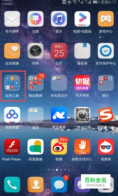 首先,我们打开我们的手机,然后点击手机桌面上的实用工具;