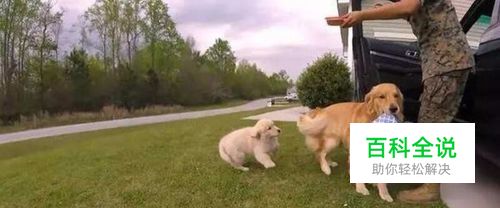 它的女儿小金毛也在后面陪着它。这个时候,过来了一辆灰色的车子,金毛妈妈不停地注视着这辆车,等它确认了这的确是它女主人的车子后,马上狂奔过去迎接,小金毛也紧跟在后面。