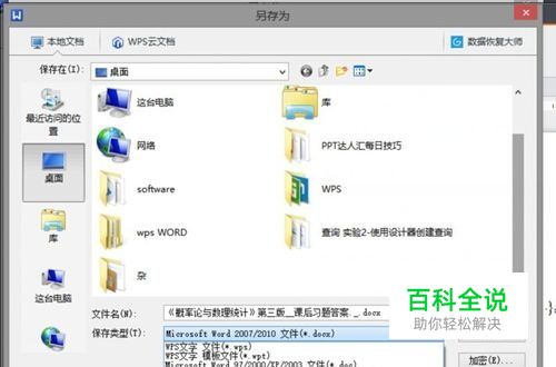 弹出窗口处,文件类型选择下拉选项,点击你所需要的word文档格式