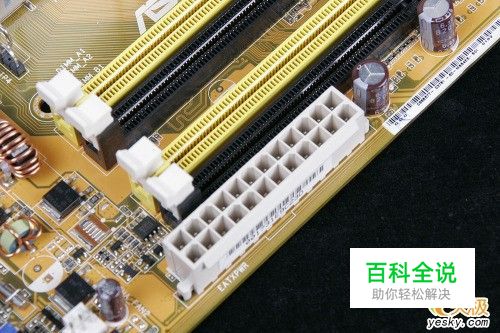 在主板上,我们可以看到一个长方形的插槽,这个插槽就是电源为主板提供供电的插槽(如下图)。目前主板供电的接口主要有24针与 20针两种,在中高端的主板上,一般都采用24PIN的主板供电接口设计,低端的产品一般为20PIN。不论采用24PIN和20PIN,其插法都是一样的 。