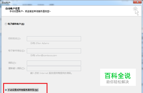 因采用outlook自动配置,会出现 “无法执行操作,因为对象已被删除”的错误,故本文采用手动配置,点击下一步