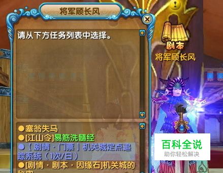 剧本进入道具:机关城定点追踪系统(晨曦草原将军顾长风处领取)