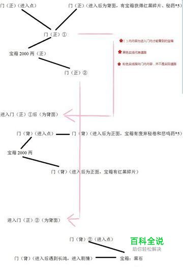 从自己的屋子,到黑猫市场卖宝物,到后山交血脉任务,得到镶金的小纸条,到八卦阁将三张镶金的小纸条交给店小二(可存档,不给的话,对剧情有影响,虽然只是两段话的问题。。。。),伪西天(此时醉着死了),壬之屋,第一层宝箱古代秘药——神药——古代秘药,第二层宝箱神药——神药——古代秘药,期间击败星芒、日耀、月辉剑使然后到达山顶,最后剧情,打三次左殇,雨血结束。