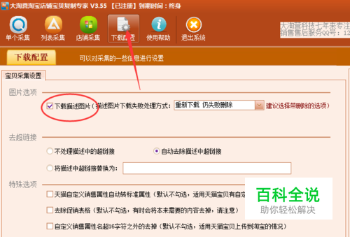 没有数据包的情况下,打开大淘营复制专家复制宝贝描述图片。 首先到然后运行复制工具,打开工具的下载配置,勾选一下“下载描述图片”然后点保存配置。如图: