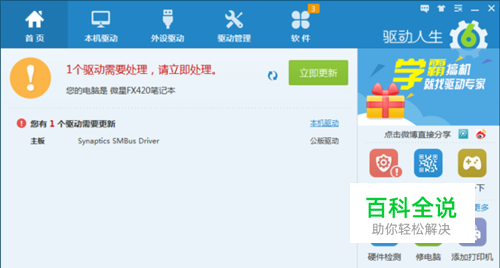 首先,安装驱动人生。安装好驱动人生之后,打开主界面,可以检测一下自己的电脑驱动是否需要更新。但是不要盲目去点击“立即更新”按钮,因为驱动程序并不是最新的就是最好的,只要自己的电脑运转正常,就不需要去更新驱动。