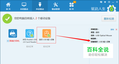 其次,打开外设驱动。你会看到,凡是你的电脑接入的USB输入设备,都会出现在外设驱动页面。点击具体USB输入设备名称,可以查看设备详细信息。