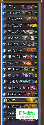 这个BOSS一定是用牧师打起来最简单(个人感觉),整体打法思路很简单,先沉默法杖,然后打死法杖,完了就是呼BOSS脸。我之前试过网上2015年11月攻略里的那套牧师卡组,感觉好难用,而且有两张牌我还没有。然后根据那套卡组进行了尝试和调整,组了如下卡组,一遍过。 沉默、暗言术:痛、末日预言者是一定要带的,记住一定要先沉默法杖再打掉它,末日预言者两个用处,1、前期抽到了沉默但是抽不到暗言术痛,而BOSS开始铺场了,那就丢预言者上去。2、大劣势下清场(前中期的时候)。 权杖一定要在开场的时候沉默了打掉,不然很麻烦。