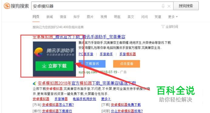 打开搜狗搜索,搜索“腾讯手游助手”,将其安装到电脑上面,如图所示。