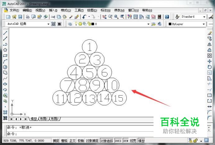 使用删除指令删除掉多余的小圆,八球的摆球图的布阵就算是绘制完成了,如图所示。