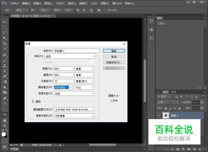新建一块画布,画布的大小设置为800*800,背景色设置为白色。