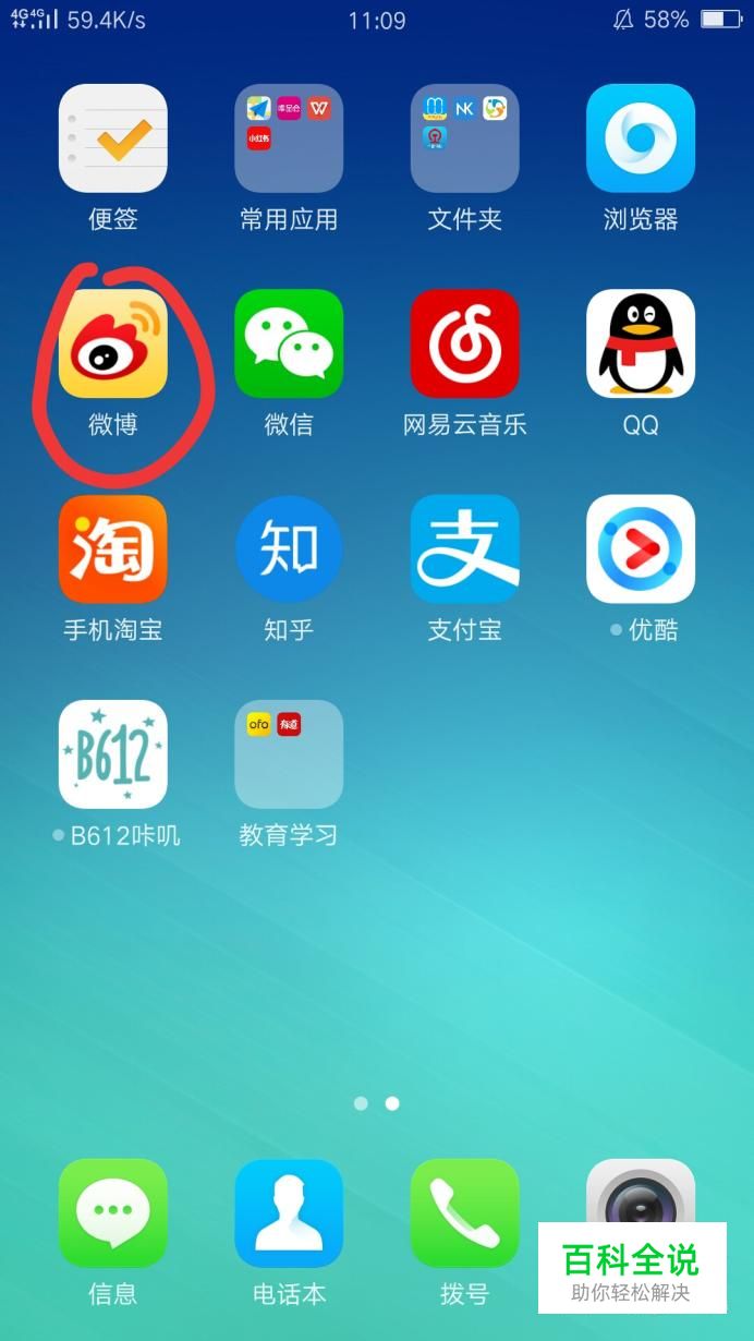 首先,打开手机,找到微博图标,点开
