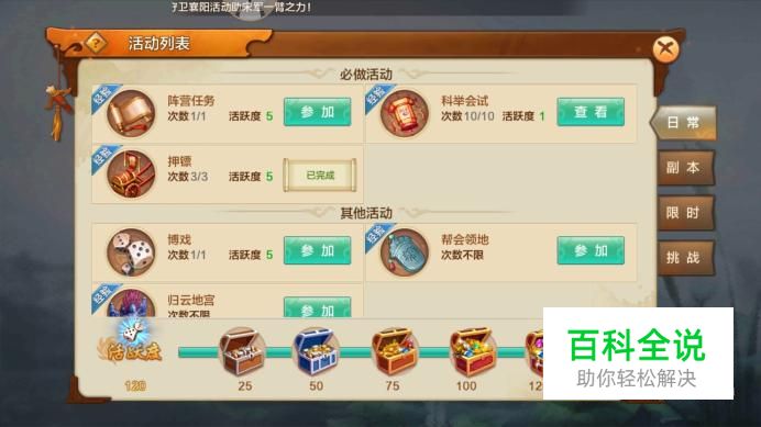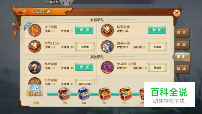 进入限时活动界面,在必做活动中找到守卫襄阳点击“参加”