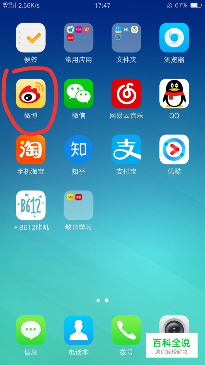 首先,打开手机,找到微博图标,点开
