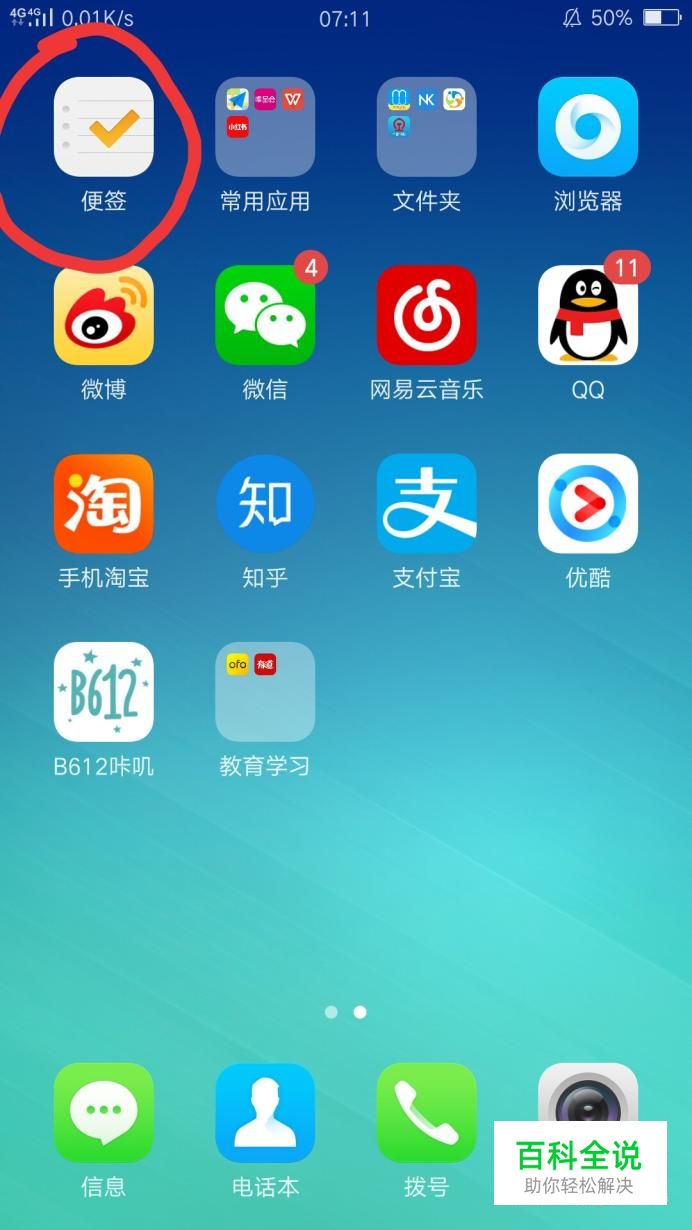 首先打开手机,找到便签图标,点开