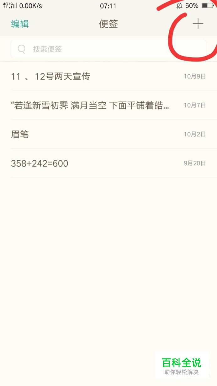 打开便签后其界面如图所示,然后点击界面右上角的加号