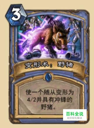 变形术野猪算是法师一张比较灵活的卡,进可以变自己的随从加强攻击能力,退可以变对面的大怪,比较好解,还不过法师好卡太多这张有时候找不到位置。