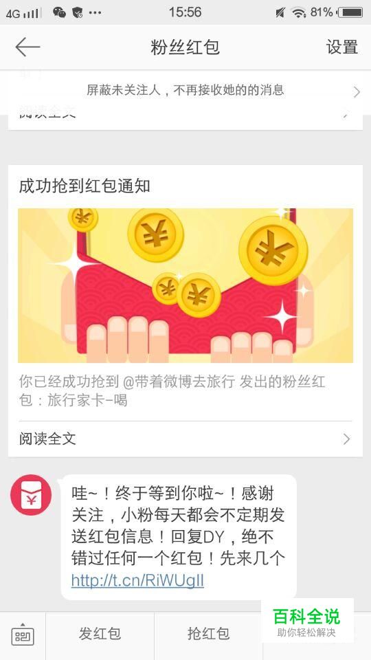 @特定的微博账号,比如说@粉丝红包,或者发微博的时候加话题#让红包飞#,#带着微博去旅游#。也会收到私信提醒,说是有粉丝红包。