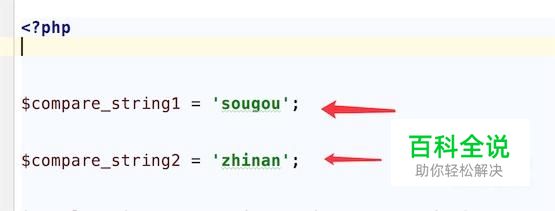 首先定义二个字符串变量,假设要比较的是这二个字符串 $compare_string1 = 'sougou'; $compare_string2 = 'zhinan';