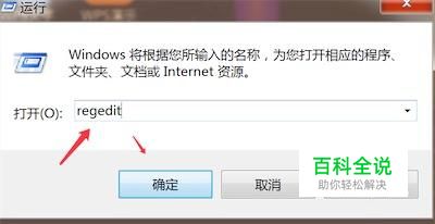 卸载后,我们还需要删除注册表里剩余的键值。点击开始菜单,找到‘运行’,打开后输入regedit,点击确定按钮。