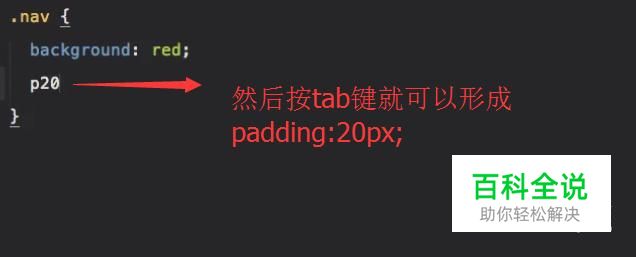 安装好以后我们再回到CSS文件中,这个时候我们输入p20并按下tab键,你会发现生成了padding:20px
