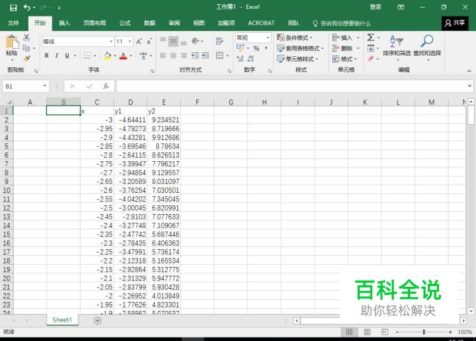 首先,我们以x为横坐标,分别以y1和y2为纵坐标,绘制出散点图。首先选中这3列数据,如下所示。