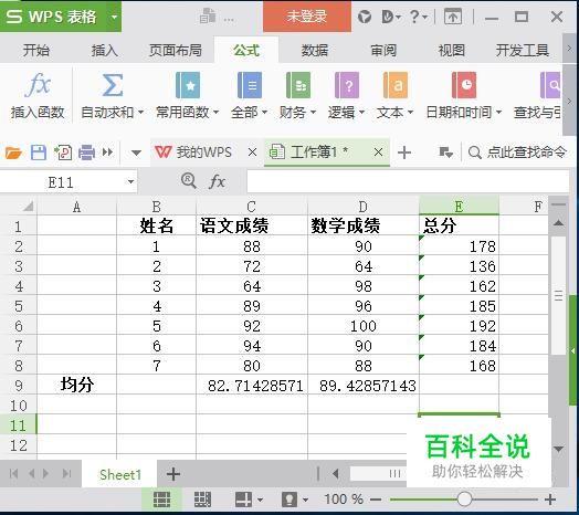 Excel用函数计算成绩的总分与平均分