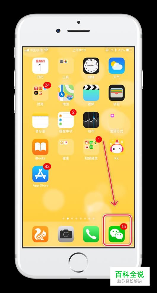 首先在我们的手机桌面找到微信并点击它,如下图所示。