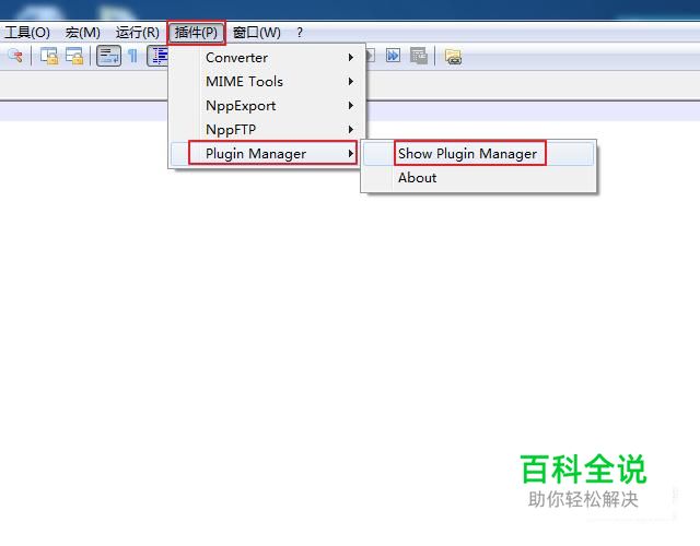 打开插件菜单,找到“Plugin Manager”,点击后面的“Show Plugin Manager”。