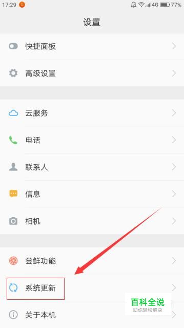 在设置页面,我们滑动页面到最下面,找到系统更新并点击。