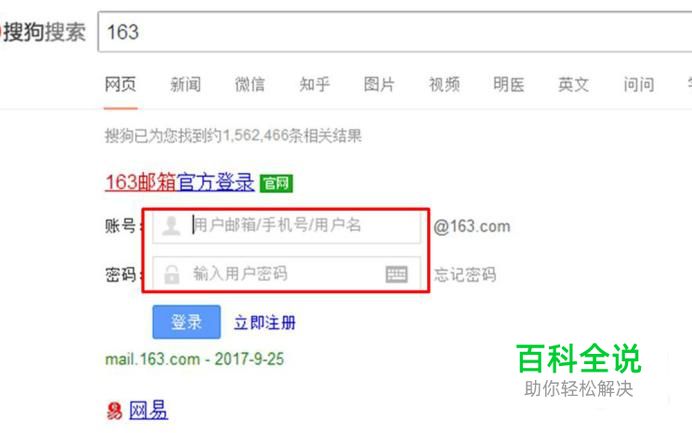 在搜索引擎中输入163,然后在搜索结果中输入账号和密码,点击登录,如图所示。