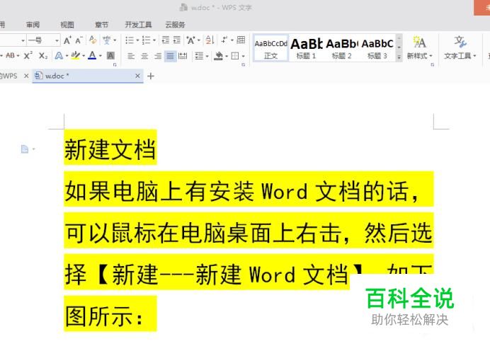 新建文档 如果电脑上有安装Word文档的话,可以鼠标在电脑桌面上右击,然后选择【新建---新建Word文档】,如下图所示: