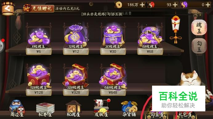 第二就是【花钱购买】去商店花钱直接购买勾玉,也可以购买各种特惠礼包,这是最直接的获取勾玉的办法,如图,