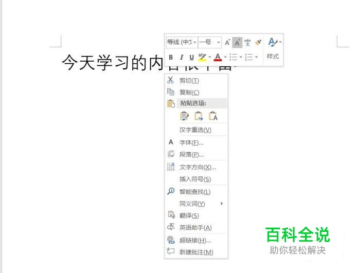 选中文字,右键——字体。