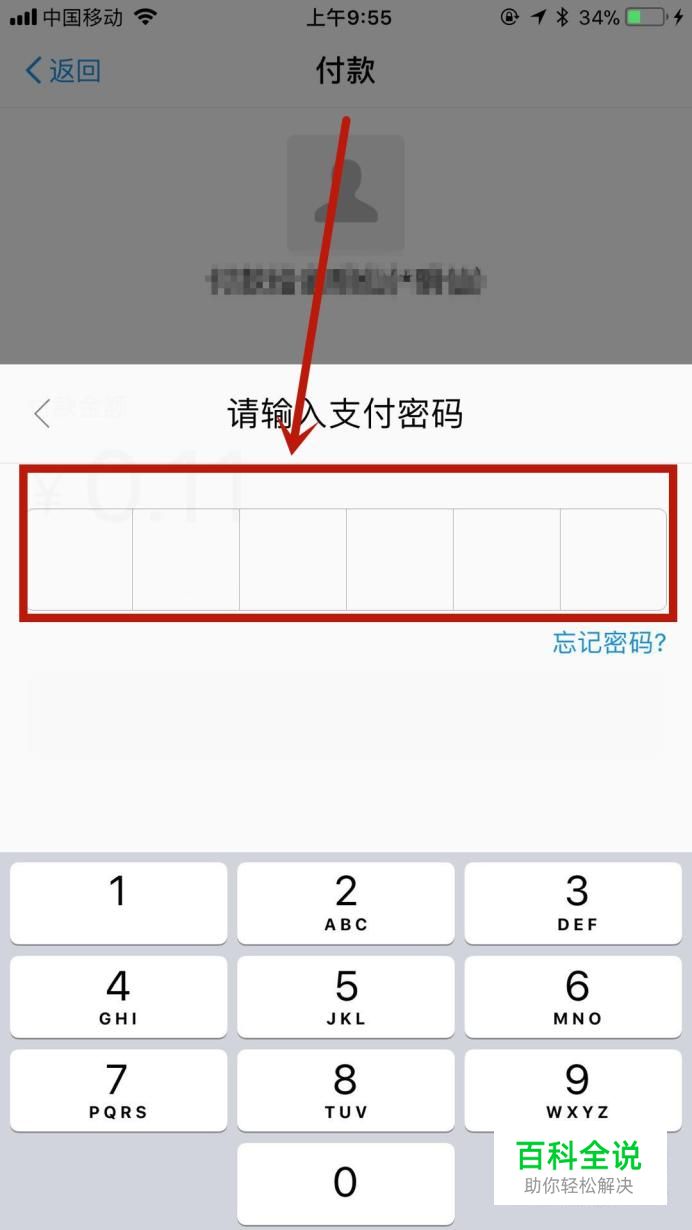 最后输入键入你的支付密码,完成付款动作就可以了。
