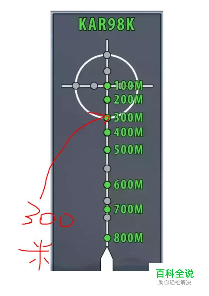 大家都知道,子弹在空中都会往下落,98k下落程度大,300米的时候使用第三格瞄准