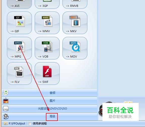 在“格式工厂”左侧的导航列表中单击“高级”选项。