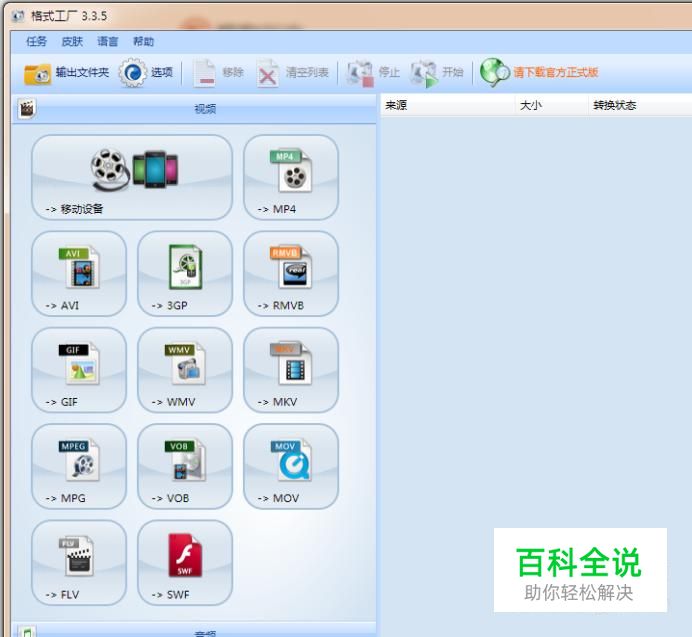 最后点击“格式工厂”工具栏上的“开始”按钮即可